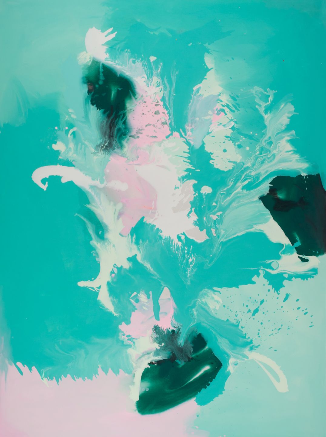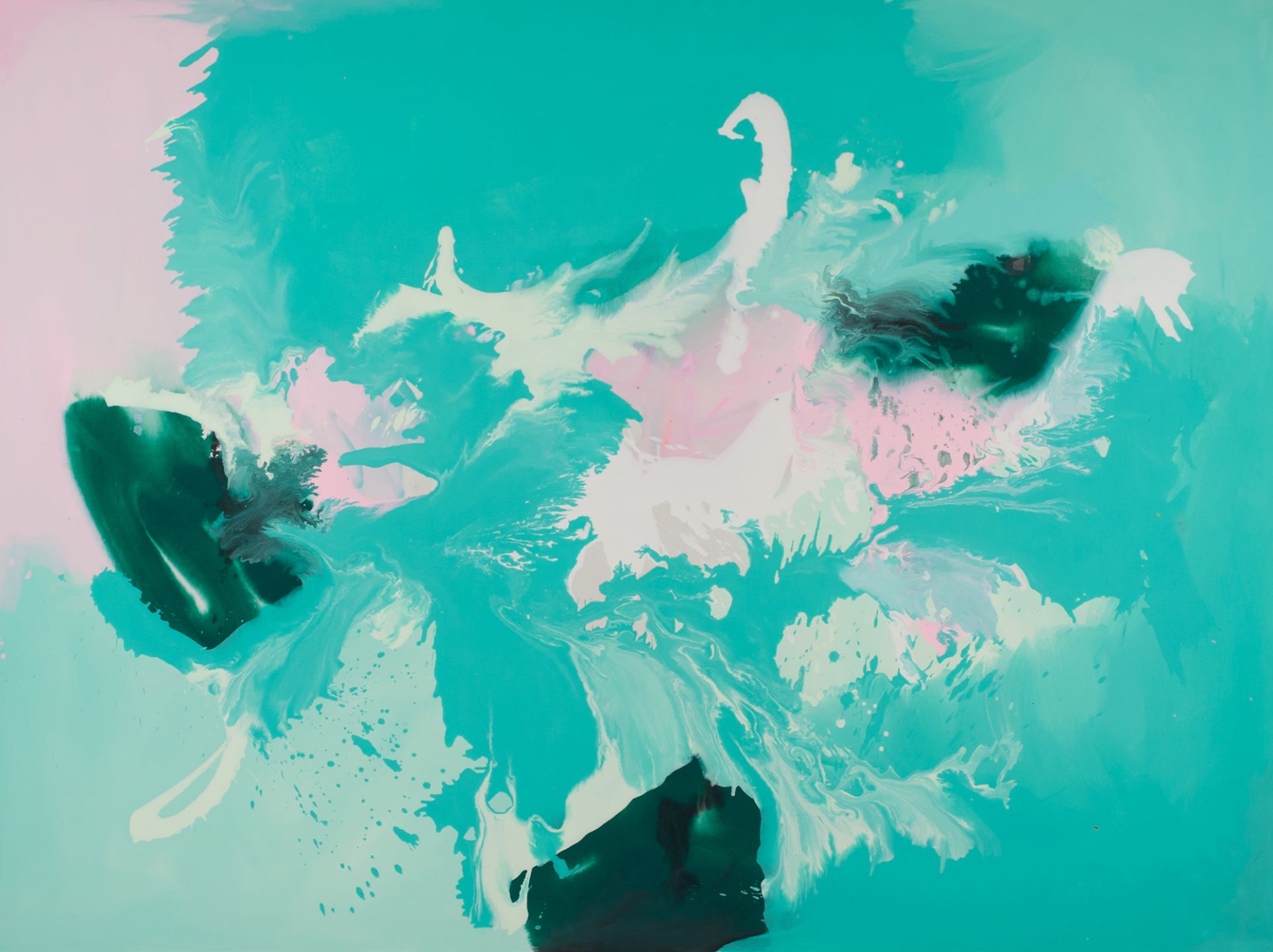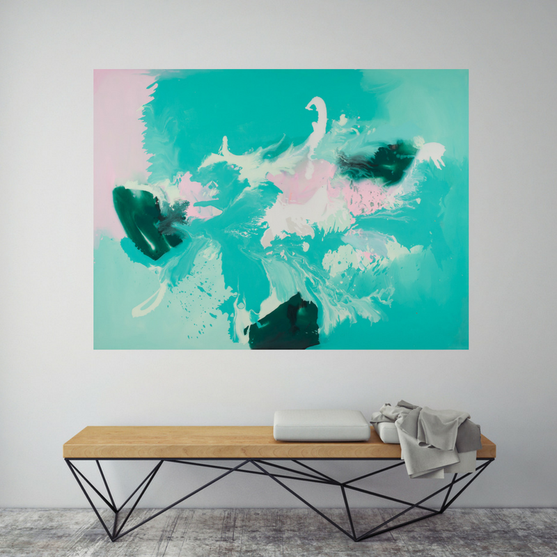 Beautiful pastel multicolor abstract painting featuring shades of pink and green in a colour fusion design.