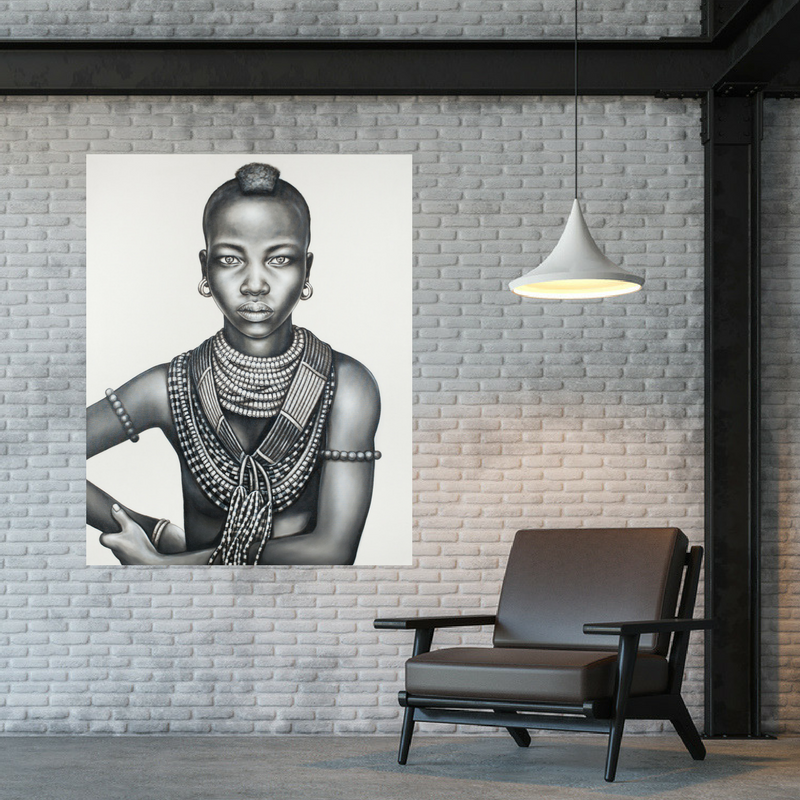 Beautiful handpainted black and white tribal girl with mohawk on white background.