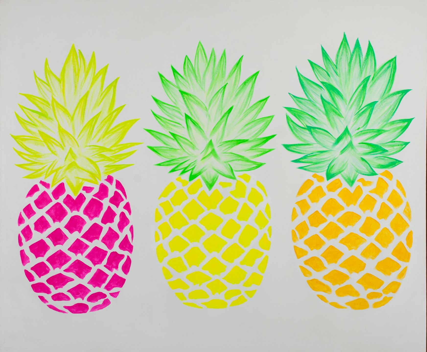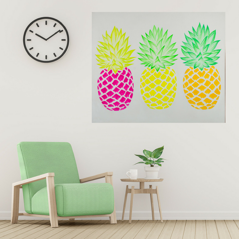 Beautiful hand painted bright pineapples in citrus shades of green, yellow, orange and pink.