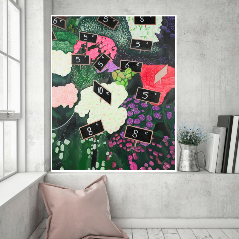 Beautiful handpainted Parisian flower stand with Euro price points.