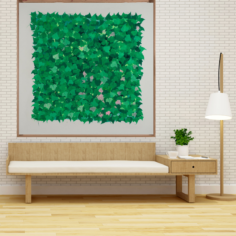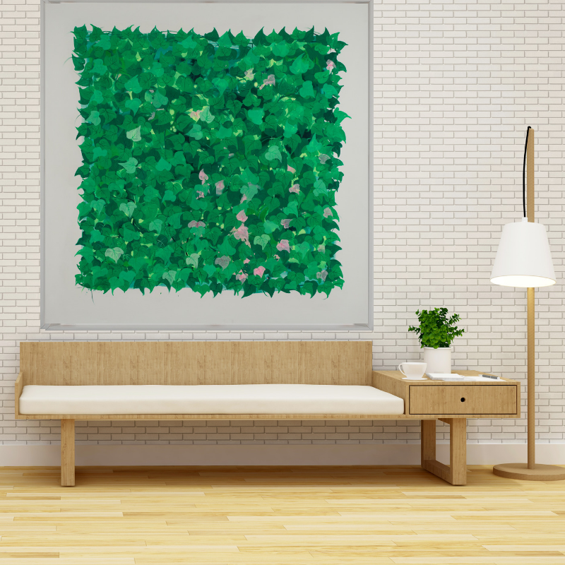 'Ivy Wall' featuring green leaves with a splattering of soft pink leaves.