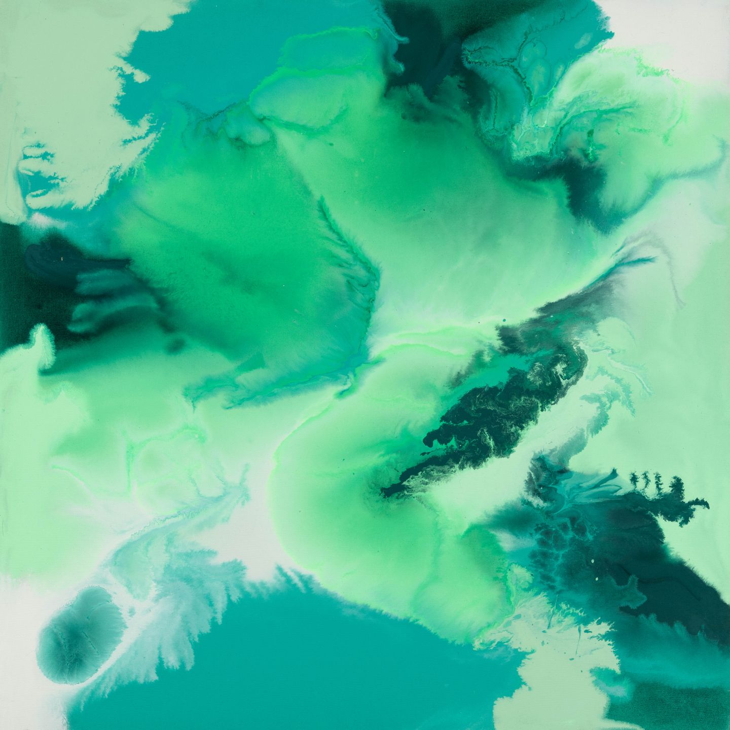 Beautiful pastel multicoloured abstract print featuring mixed shades of green.