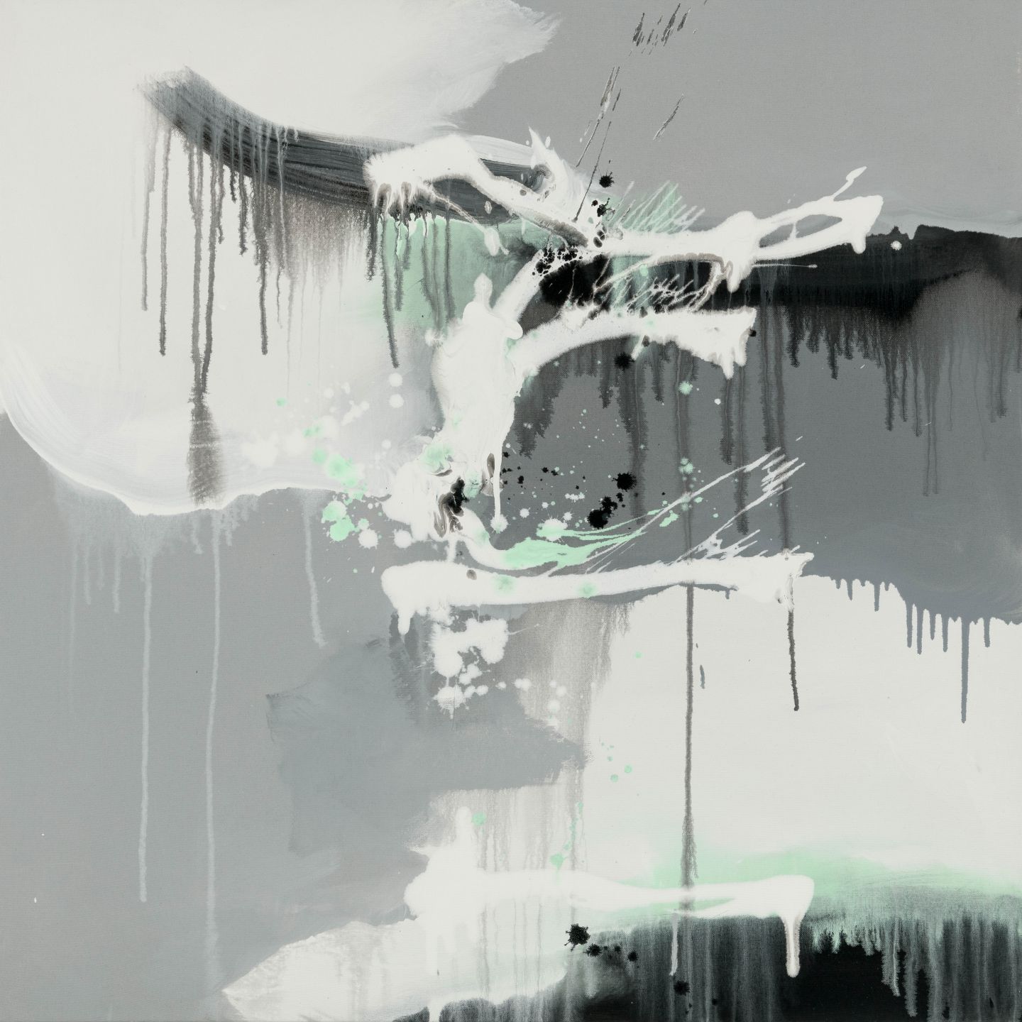 Beautiful grey drip design featuring black, white and a touch of mint.