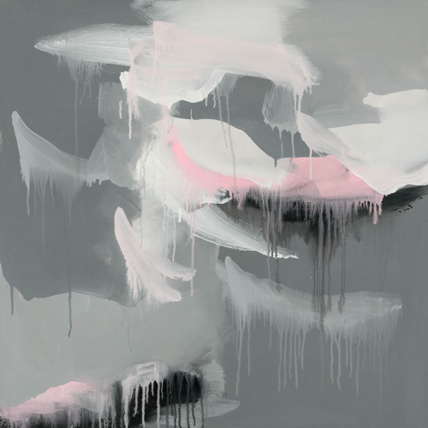 Beautiful grey drip design featuring black, white and a touch of soft pink and coral.