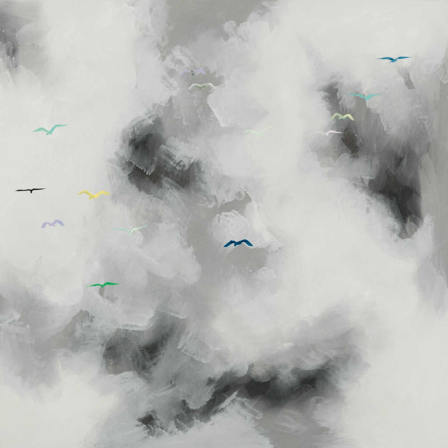 'Grey clouds with Multi coloured Birds'