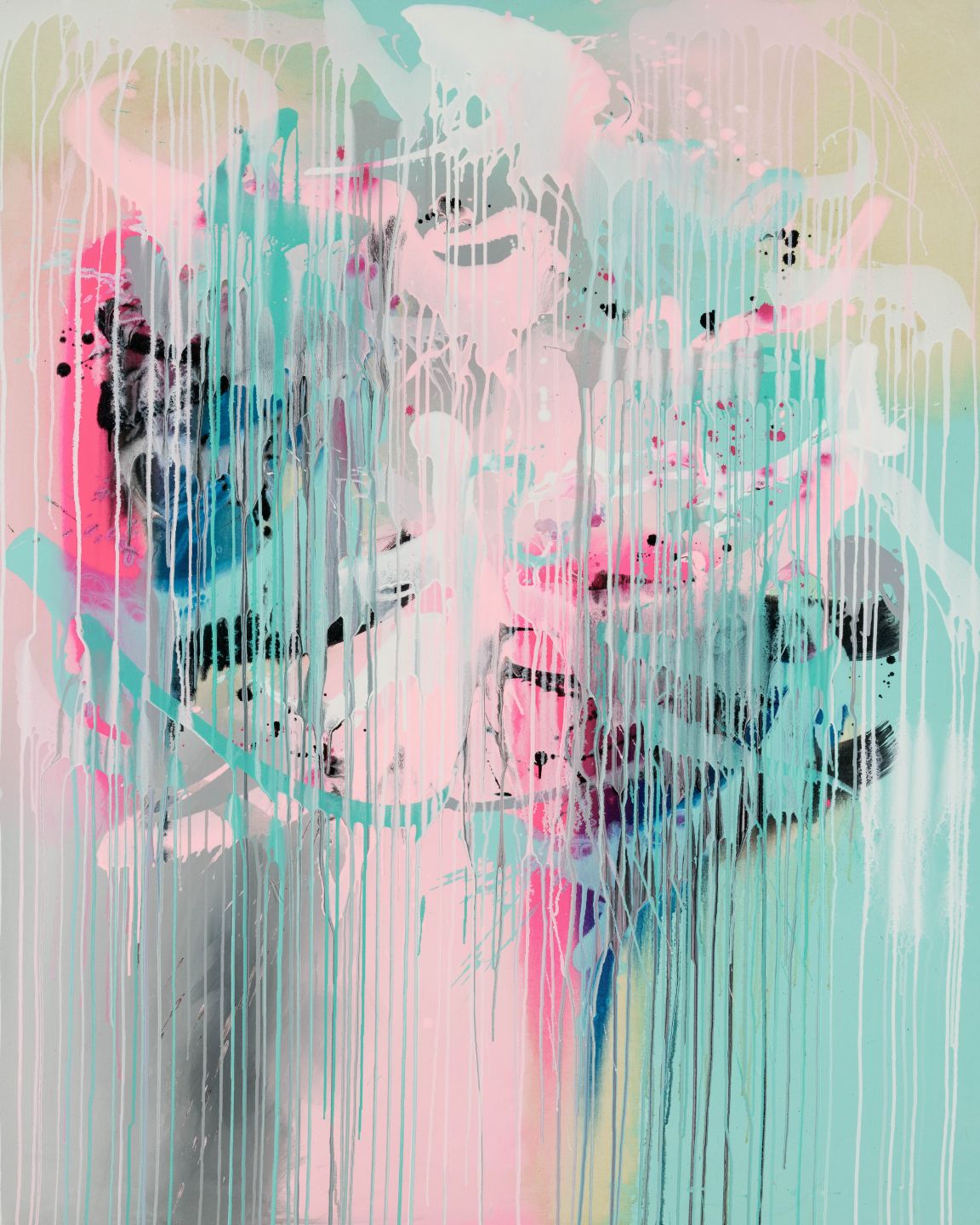 Beautiful pastel multicoloured abstract print featuring  pink's, blues and greens..