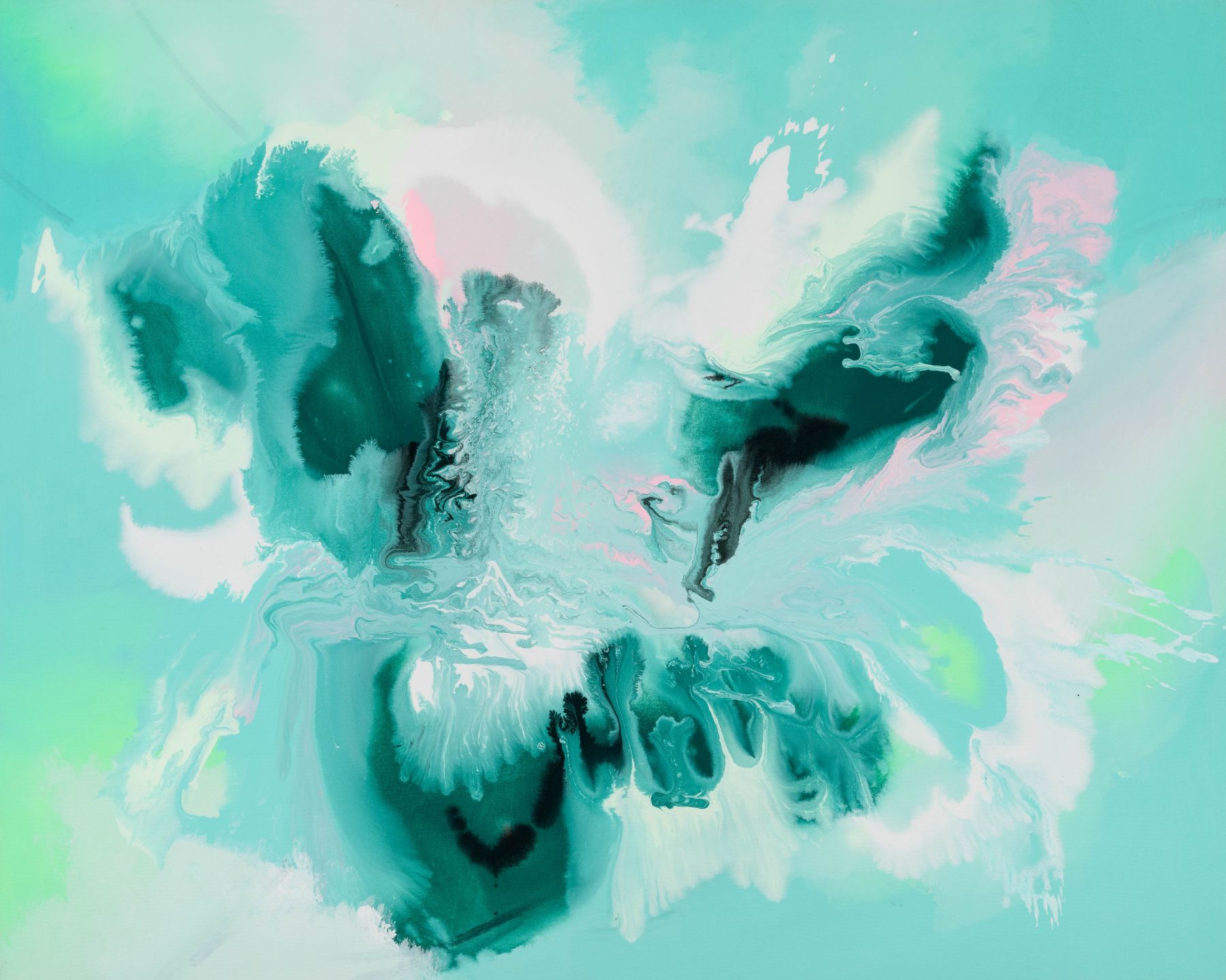 Beautiful colour fusion design featuring mixed shades of green with a touch of pink.