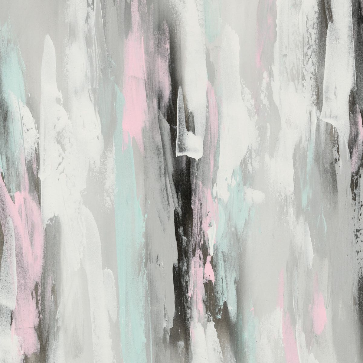 Beautiful pastel abstract print featuring aqua, pink grey and white.