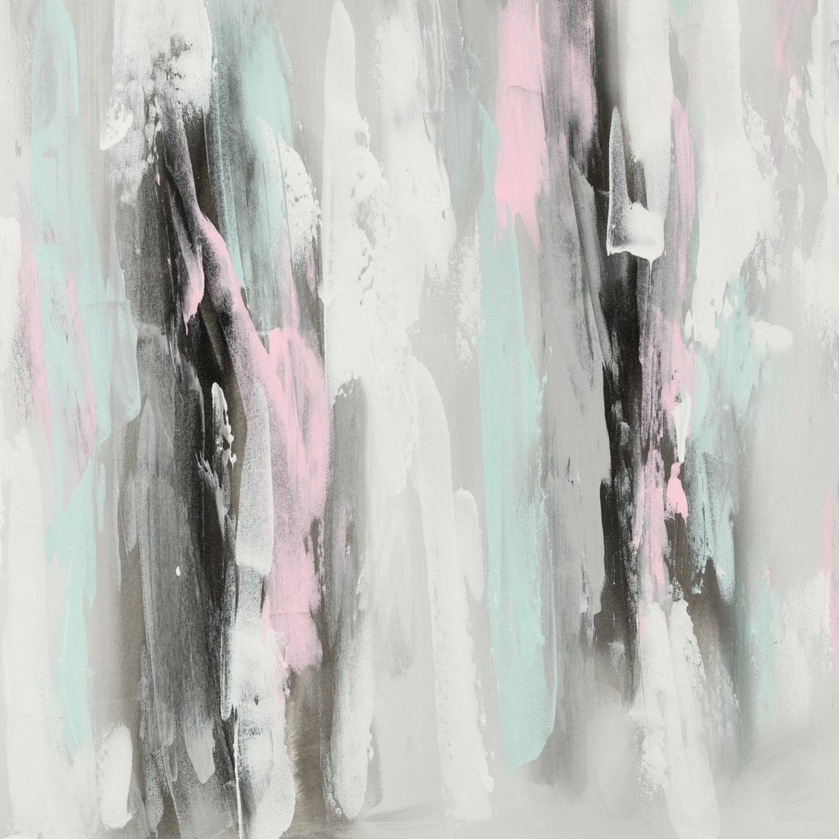 Beautiful pastel abstract print featuring aqua, pink grey and white.