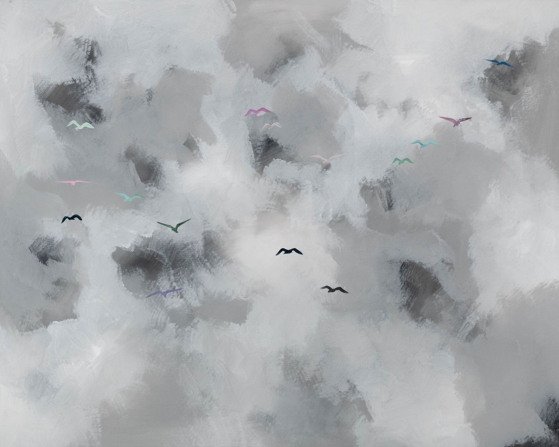 'Grey clouds with Multi coloured Birds'