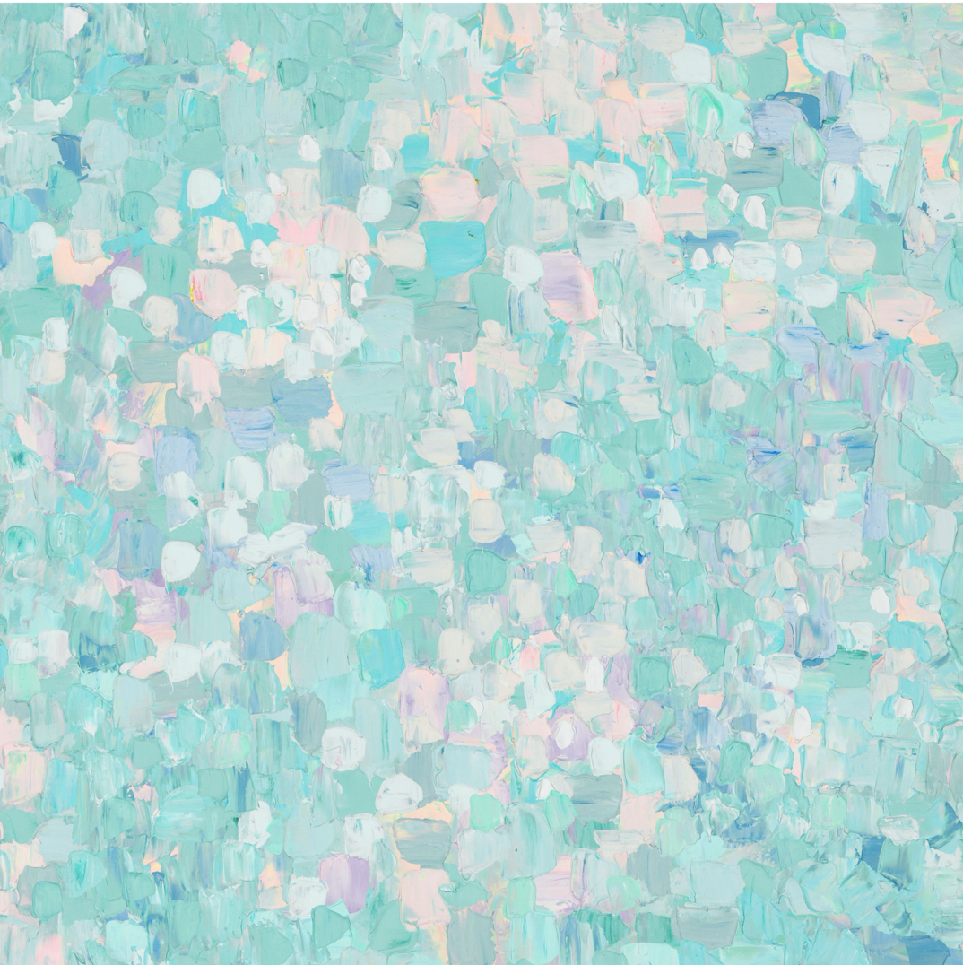 Beautiful pastel multicoloured abstract print featuring mint, pink, blue, grey and white colour fusion design.