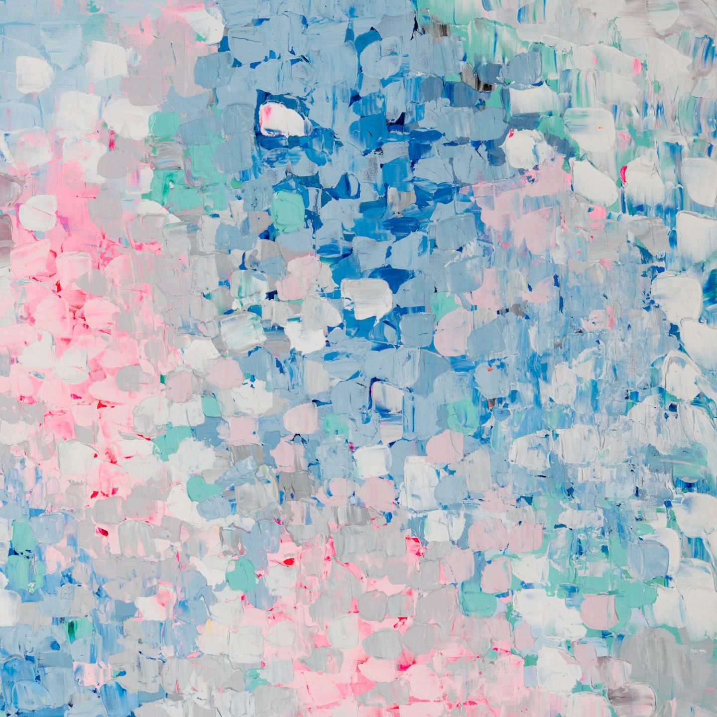 Beautiful pastel multicoloured abstract print featuring blue, pink, green, grey and white in the Luna series design.