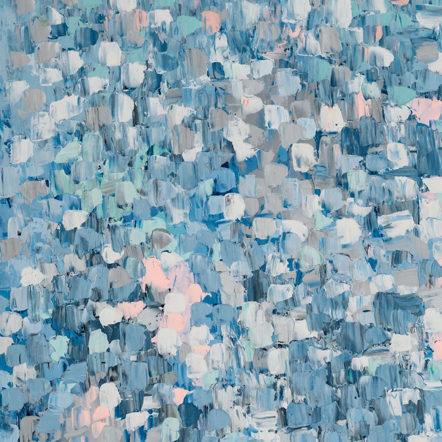 Beautiful pastel multicoloured abstract print featuring mint, pink, blue, grey and white colour fusion design.