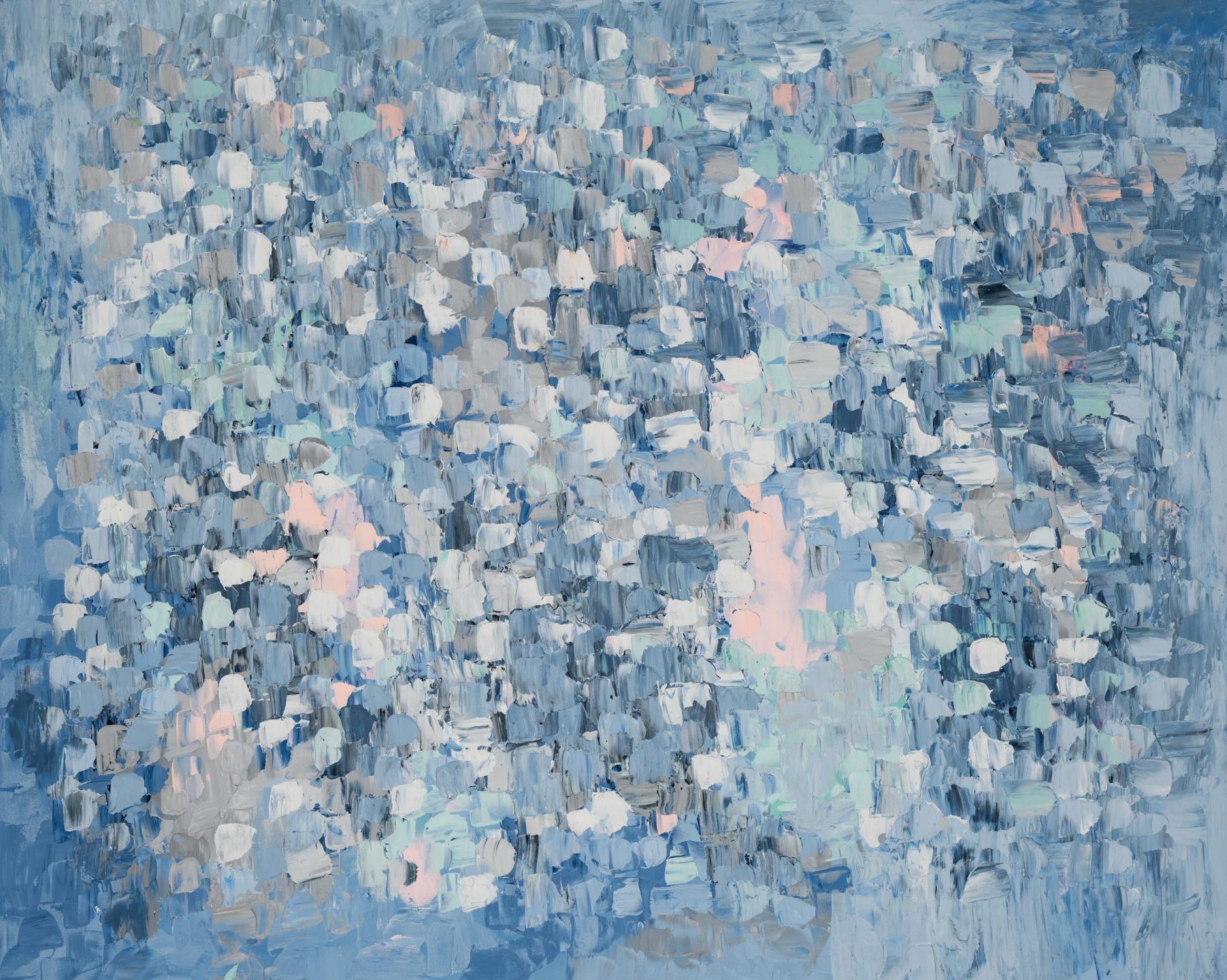 Beautiful pastel multicoloured abstract print featuring mint, pink, blue, grey and white colour fusion design.