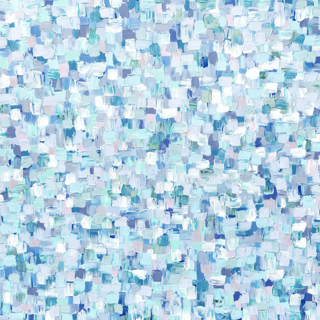 Beautiful pastel multicoloured abstract print featuring green, mint, blue, grey and white in the Luna series design.
