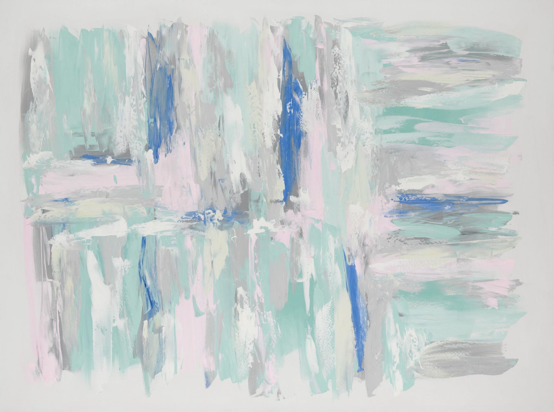 Beautiful abstract criss cross design in pastel pink, blue, aqua, grey and beige on a white background.