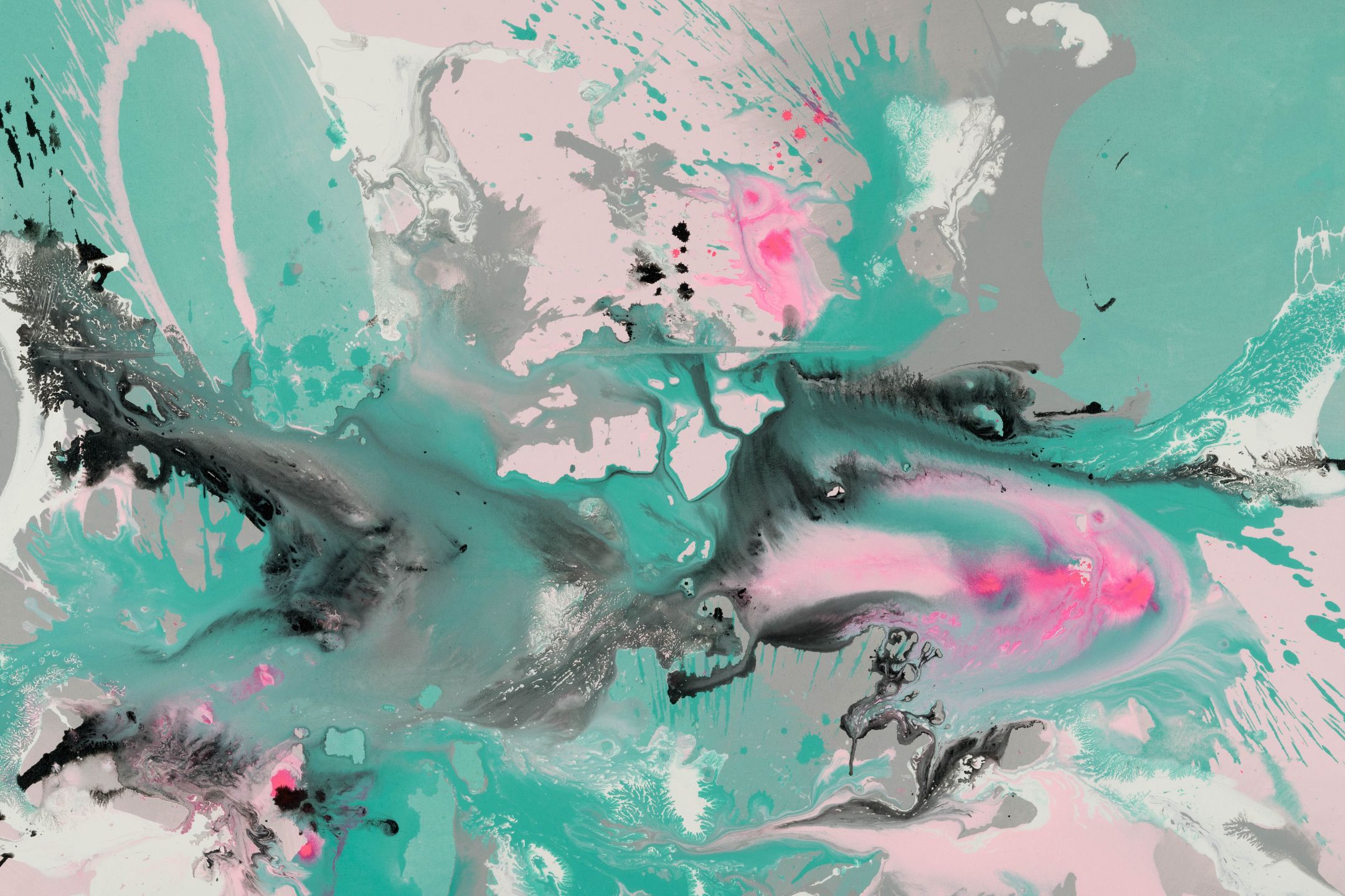 Beautiful bright multicoloured abstract print featuring , pink, green, grey and white colour fusion design.