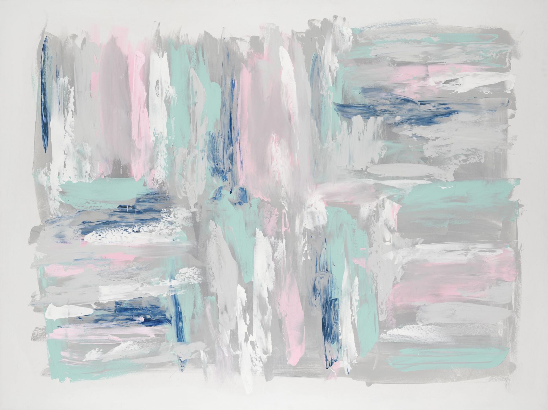 Beautiful abstract criss cross design in pastel pink, blue, aqua, grey and beige on a white background.