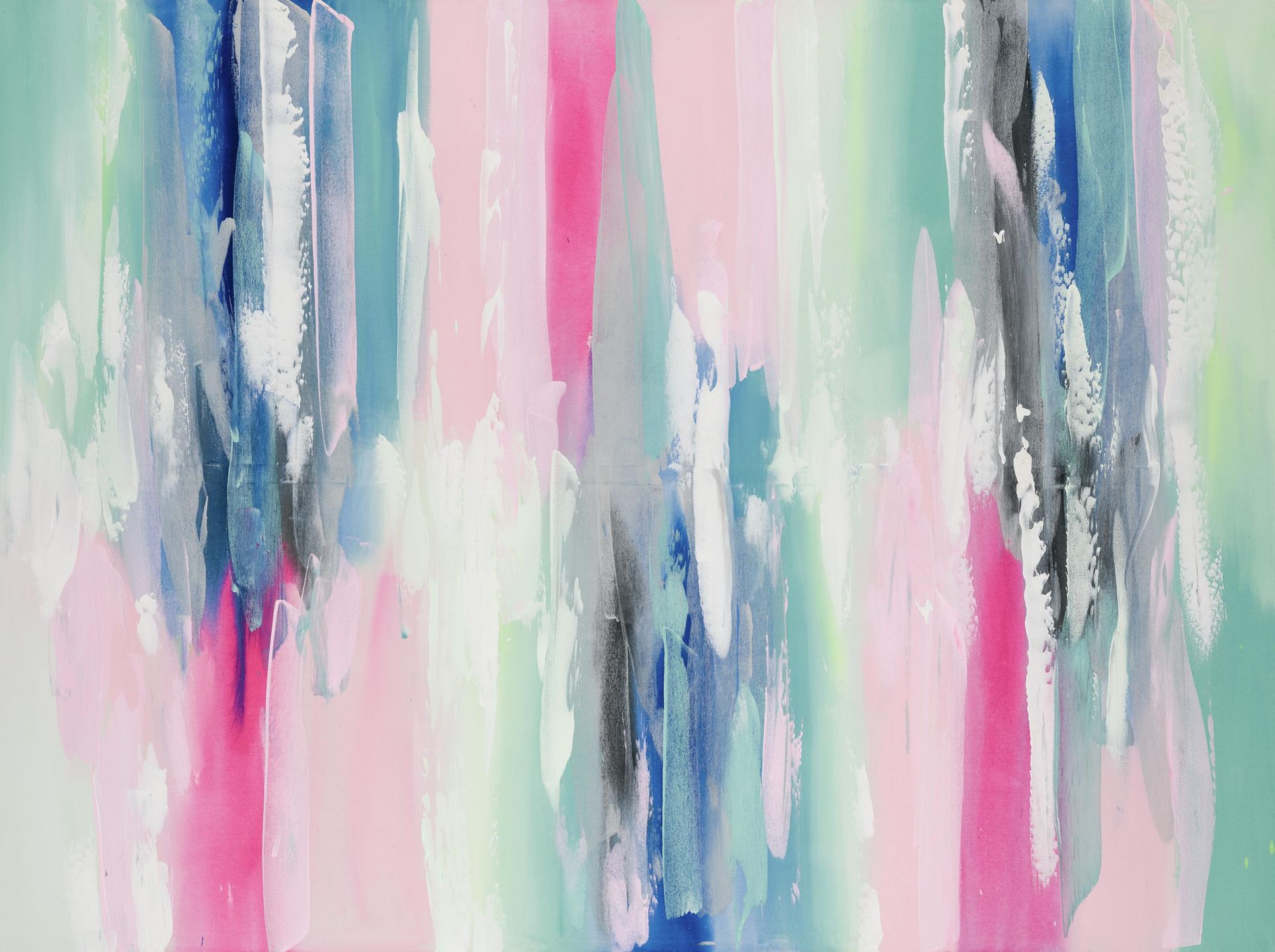 Beautiful bright multicoloured abstract print featuring  pink, green, grey and white colour line  design.
