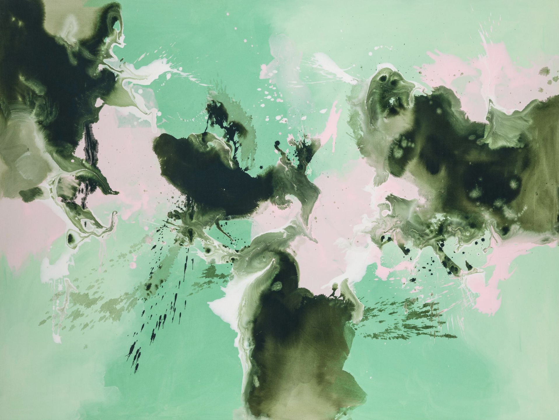 Beautiful colour fusion design featuring shades of green, khaki and pink.