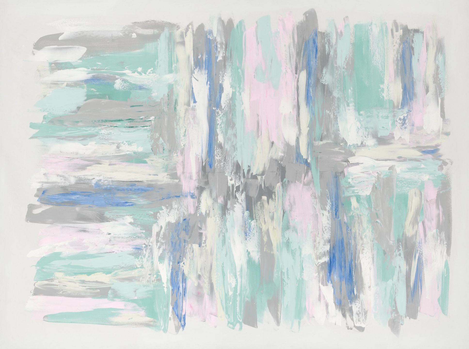 Beautiful abstract criss cross design in pastel pink, blue, aqua, grey and beige on a white background.