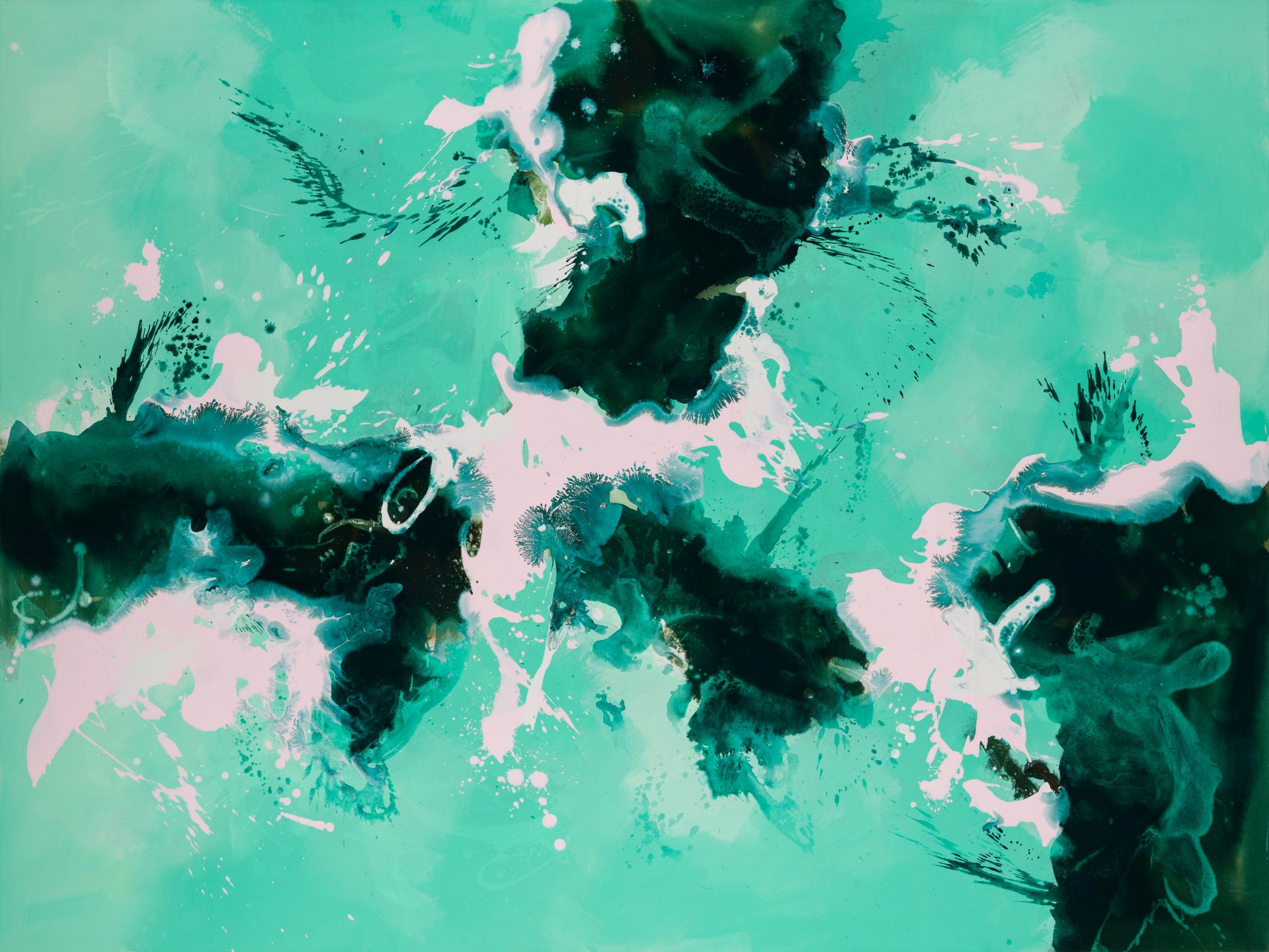 Beautiful colour fusion design featuring mixed shades of green with a touch of black and pink.