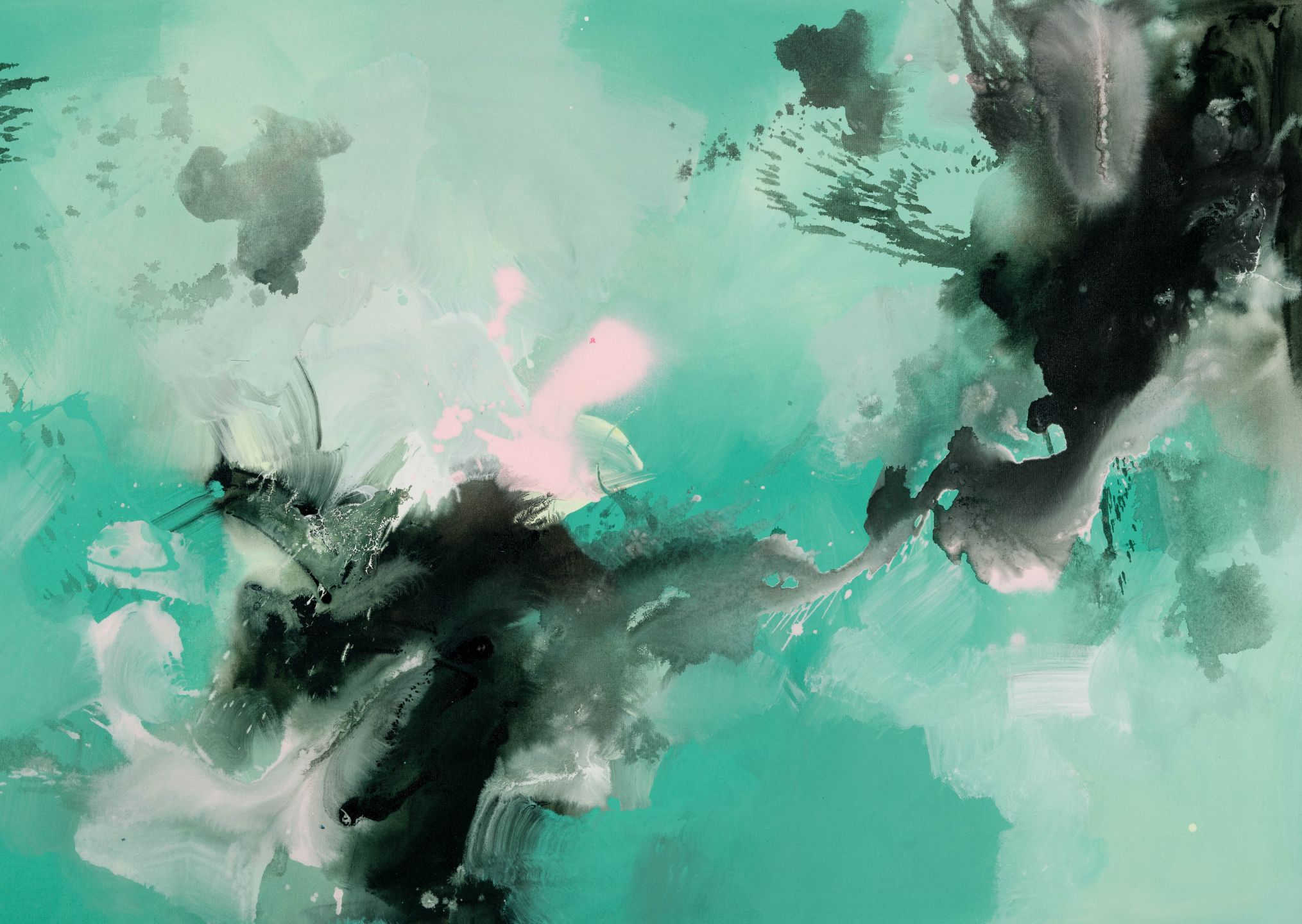 Beautiful colour fusion design featuring mixed shades of green with a touch of black and pink.