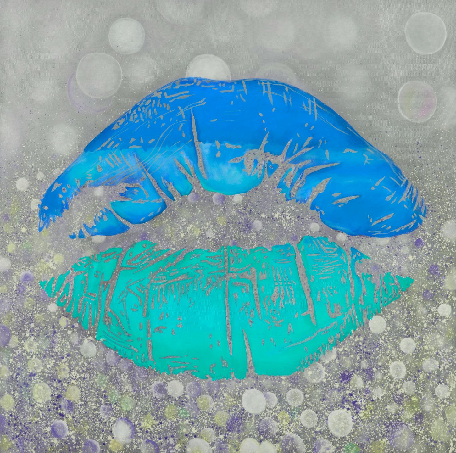 Beautiful print of Blue lips on a grey background.