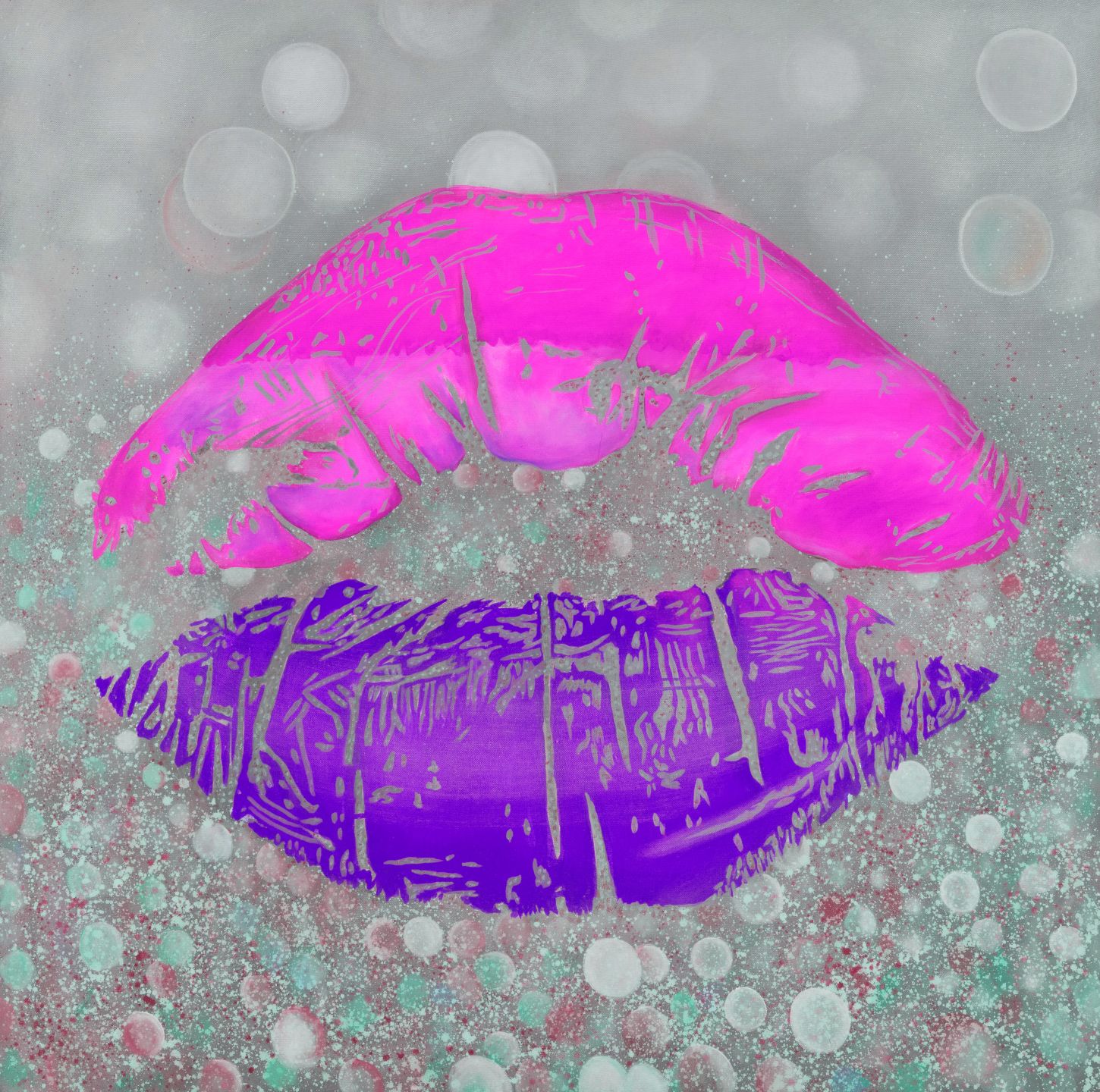 Beautiful print of Pink & Purple lips on a grey background.