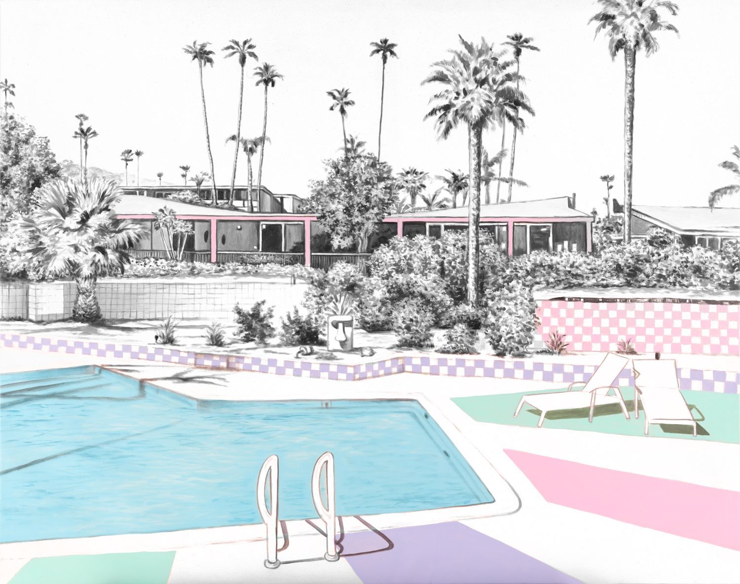 Palm Springs Home multicolour abstract print featuring aqua, blue, magenta and black and white.